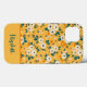 Fun white flowers and leaves on a yellow gold background, this cell phone case is personalised with your name on the bottom. **Select ANY STYLE and ANY MODEL to create for yourself or give as a gift. SEE MORE designs in our store.