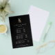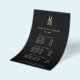 Elegant flyer design for hair salons or stylists displays your services or price list in classic white lettering on a black background adorned with a pair of floral-embellished scissors in faux gold foil. Includes three customisable headings and body text fields, and space for your salon contact information along the bottom. To adjust layout, enter your text and then use the Customise function to change positioning and font sizes.