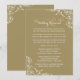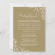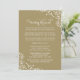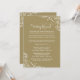 Add warmth and elegance to your rehearsal evening with this gold wedding rehearsal dinner invitation. White scrollwork flourishes accent the corners while flowing calligraphy introduces a charming rhyming poem guiding guests from ceremony practice to dinner. The rich gold background creates a luxurious yet welcoming feel. All text, colours, and layout are fully customisable to match your celebration.