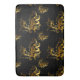A very elegant pattern featuring large, sweeping metallic gold flourishes with ornate leaves and swirls, scattered across a black background.