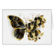 Gold flower butterfly with black jewellery orchid, decorated with gold leaves on white background.
