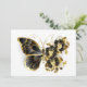Gold flower butterfly with black jewellery orchid, decorated with gold leaves on white background.