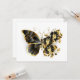 Gold flower butterfly with black jewellery orchid, decorated with gold leaves on white background.