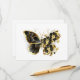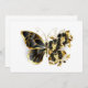 Gold flower butterfly with black jewellery orchid, decorated with gold leaves on white background.