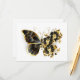 Gold flower butterfly with black jewellery orchid, decorated with gold leaves on white background.