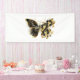 Gold flower butterfly with black jewellery orchid, decorated with gold leaves on white background.