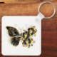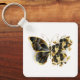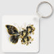 Gold flower butterfly with black jewellery orchid, decorated with gold leaves on white background.