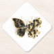 Gold Flower Butterfly with Black Orchid Paper Coaster