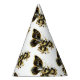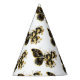 Gold flower butterfly with black jewellery orchid, decorated with gold leaves on white background.