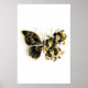 Gold flower butterfly with black jewelry orchid, decorated with gold leaves on white background.