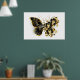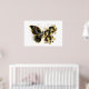 Gold flower butterfly with black jewelry orchid, decorated with gold leaves on white background.