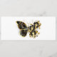 Gold flower butterfly with black jewellery orchid, decorated with gold leaves on white background.
