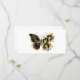 Gold flower butterfly with black jewellery orchid, decorated with gold leaves on white background.