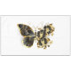 Gold flower butterfly with black jewellery orchid, decorated with gold leaves on white background.