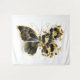 Gold flower butterfly with black jewellery orchid, decorated with gold leaves on white background.