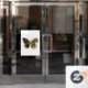 Gold flower butterfly with black jewellery orchid, decorated with gold leaves on white background.