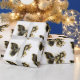 Gold flower butterfly with black jewellery orchid, decorated with gold leaves on white background.