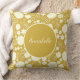 Gold Flowers in Floral Pattern Custom Named Cushion