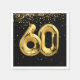 Gold mylar party balloons on black with gold star confetti for 60th birthday.