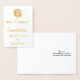 This gold foil wedding anniversary card design features a message like "6 years of marriage! Congratulations, Betty-Lou & Andrew!" on the front. The married couple’s names ("Betty-Lou & Andrew") can be changed to personalise the card. The inside features a customisable message like "May your 6th wedding anniversary be a happy and joyful one!". It could be given to a married couple who are celebrating their sixth wedding anniversary. [~Z0000048]