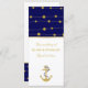 Gold foil anchor and beads modern navy blue nautical wedding ceremony andarty ptogram featuring an anchor made of FAUX gold foil and a pattern border of golden balls that look like beads on the rope on navy blue background. Your text is in gold on white with gold outline. This elegant, stylish and contemporary wedding design is a completely customisable template and is part of a wedding collection or set perfect for a summer beach wedding. Note that THERE IS NOT REAL GOLD FOIL JUST PRINTED IMAGES.