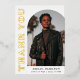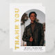 Stylish and trendy graduation thank you card featuring the graduate's photo on the front with an offset arch photo frame. "Thank You" is displayed in gold foil retro lettering on a white background. Personalize the front of the arch photo graduation thank you card by adding the graduate's name, school, and graduation year. The card reverses to display your typed or handwritten message. The white and gold foil graduation thank you card is perfect for both high school and college graduates.