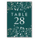 Gold Foil Baby's Breath Teal Wedding Table Numbers