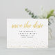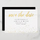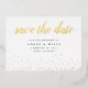Simple and elegant save the date cards notify your guests of your upcoming wedding in timeless style. Crisp white cards feature "save the date" in calligraphy script lettering, with your names, wedding date and location beneath in classic black serif type, and a sprinkle of golden confetti across the bottom. Add additional information, like your wedding website, to the reverse side in white lettering on a black background.
