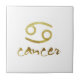 Calligraphy and the symbol for the zodiac sign cancer in gold.