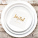 A cheerful Christmas party napkin adorned with the word "Joyful" in elegant real gold foil, designed in a playful style. This festive holiday napkin is elegantly simple, providing custom text for you to add your name.