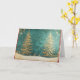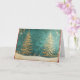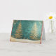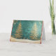 This design showcases a beautiful gold foil Christmas tree adorned with red and gold lights, surrounded by falling snowflakes. The turquoise green background is enhanced with a velvet red border and features pine tree and snowflake patterns in green and silver, adding elegance to the festive theme.