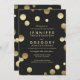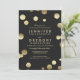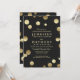Chic black and gold engagement party invitation features faux foil gold confetti dots.