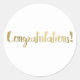 Gold Foil Congratulations Modern Script Thank You Classic Round Sticker