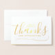 The classy and elegant way to thank family and friends for attending your special day, event, or celebratory milestone, this card features a handwritten "thanks" in gold foil on the cover and special message of appreciation for guests on the inner panels on a golden gradient background. Customise text and visual elements of front, inner, and back panels as desired.