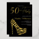 Gold Foil Black Fifty and Fabulous Modern Minimal 50th birthday invitation that you can personalise and send out for your fiftieth birthday party celebration. The words "50 and Fabulous" are set using trending bold font typography. .