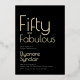 Gold Foil Black Fifty and Fabulous Modern Minimal 50th birthday invitation that you can personalize and send out for your fiftieth birthday party celebration. The words "Fifty and Fabulous" are set using trending bold font typography. . Text colors can be changed using the edit menu.