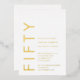 Gold Foil on White Fifty and Fabulous Modern Minimal 50th birthday invitation that you can personalize and send out for your fiftieth birthday party celebration. The words are set using timeless and trending bold font typography. Text and background colors can be changed using the edit menu.