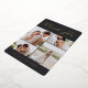 Elegant wedding thank you cards feature four photos arranged in a grid collage layout on a rich charcoal black background. "Thank You" appears at the top in chic gold foil calligraphy script, with your names along the bottom in classic block lettering. Add a personal message and signature to the back.