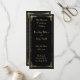 Gold foil Great Gatsby Art Deco wedding programs rack cards with customisable text printed on black background