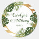 Gold Foil & Green Palm Leaf Beach Wedding Classic Round Sticker