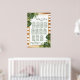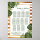 Celebrate in style with this trendy wedding seating chart. The design features a chic striped white and gold foil effect background with tropical palm leaves and matching wording in a deep shade of green... stunning and simply perfect for any couple planning a destination or beach themed wedding celebration. The design is super easy to personalise with your custom wording and your family and friends will be thrilled when they see this fabulous seating chart.