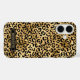Customize this gold foil leopard print iPhone 16 case with your your name in a trendy modern CAP font in gold on black. It's so chic!