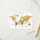 Gold Foil Look World Map Hotel Travel Information Enclosure Card