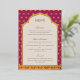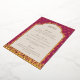 Honour the traditions of your Indian or Hindu wedding with our exquisite gold foil menu cards. These elegant cards feature a charming motif of lotus flowers, a symbol of auspiciousness in Indian and Hindu culture, rendered in shimmering gold foil. Choose from a palette of six captivating colours – red, orange, blue, purple, pink, and charcoal – to perfectly complement your wedding décor. These cards are the perfect canvas to showcase your thoughtfully curated menu, leaving a lasting impression on your guests as they celebrate your joyous occasion.