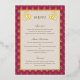Honour the traditions of your Indian or Hindu wedding with our exquisite gold foil menu cards. These elegant cards feature a charming motif of marigolds, a symbol of auspiciousness in your culture, rendered in shimmering gold foil. Choose from a palette of six captivating colours – red, orange, blue, purple, pink, and charcoal – to perfectly complement your wedding décor. These cards are the perfect canvas to showcase your thoughtfully curated menu, leaving a lasting impression on your guests as they celebrate your joyous occasion.