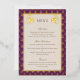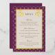Honour the traditions of your Indian or Hindu wedding with our exquisite gold foil menu cards. These elegant cards feature a charming motif of marigolds, a symbol of auspiciousness in your culture, rendered in shimmering gold foil. Choose from a palette of six captivating colours – red, orange, blue, purple, pink, and charcoal – to perfectly complement your wedding décor. These cards are the perfect canvas to showcase your thoughtfully curated menu, leaving a lasting impression on your guests as they celebrate your joyous occasion.
