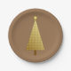 A simplified modern take on a classic Christmas tree motif, gold foil-look gradient / brocade in an antique floral wallpaper design with a cocoa background