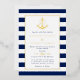 This classic nautical anchor design with navy blue and white stripes, gets an added touch of elegance with real gold foil for the anchor, the frame, and the text. Impress your guest with the timeless elegance of this nautical gold and navy blue wedding invitation!