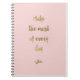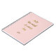 This Notebook features a brush font on pale pink background. The font is covered with a gold foil effect.