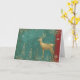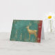A festive gold foil reindeer set amidst turquoise green snowfall and bordered by velvet red. Snowflakes and pine tree details complete this elegant Christmas design.